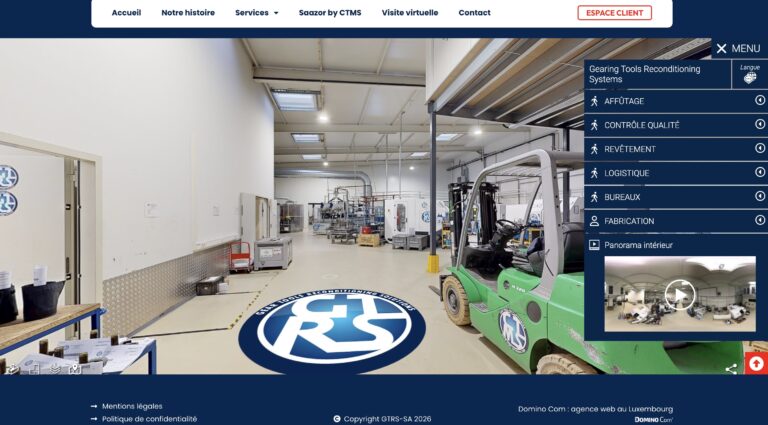 👉 Exemple : sur le site de GTRS SA, la visite virtuelle est utilisée pour valoriser les installations et renforcer la crédibilité de l’entreprise. Nous livrons un lien prêt à intégrer. Aucune mention de WIS DIGITAL.